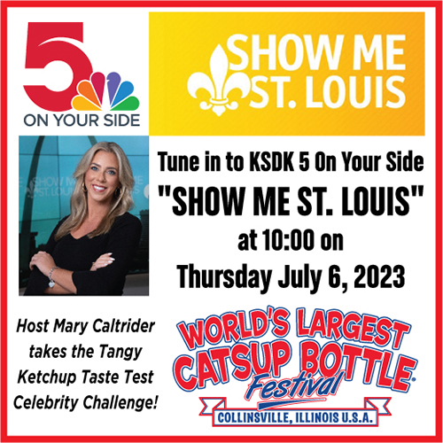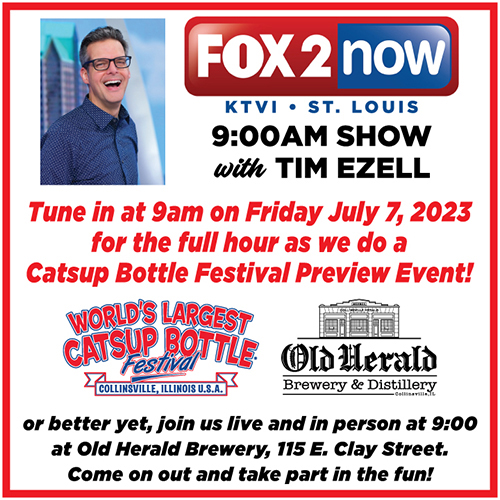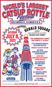 World's Largest Catsup Bottle® Festival Saturday, July 8, 2023 HERALD SQUARE • Collinsville, Illinois |